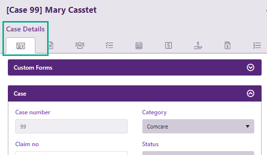 - The Status of the case indicates the stage the case is up to, such as Assessment or Rehabilitation. It can be set to Closed when the case is closed.
