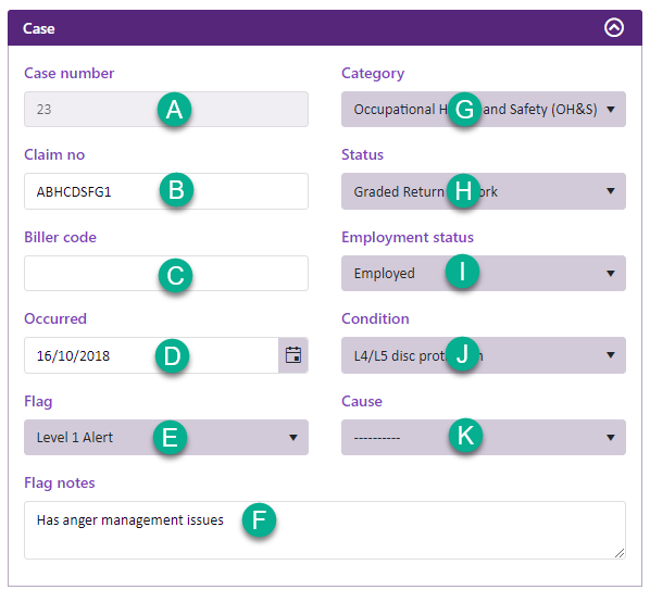The other case details are optional and can be entered or changed at any time. Each field is explained below.