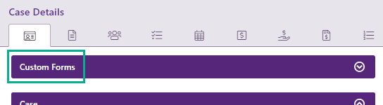 If any custom forms exist for the case's category, the Custom Forms section is at the top. See Custom forms for details.