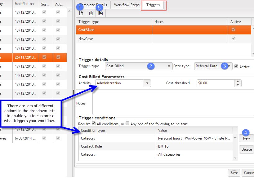 | Cost threshold reached | Workflow template will trigger when the costs in a case reach the amount entered |